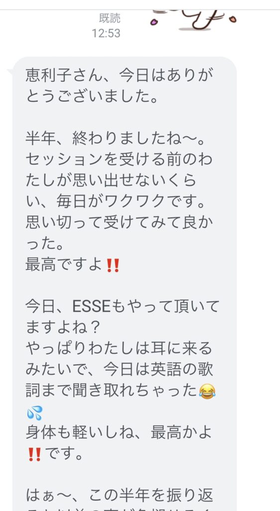 2月からの継続セッション6ヶ月を終えたAさんが感想をくださりました。